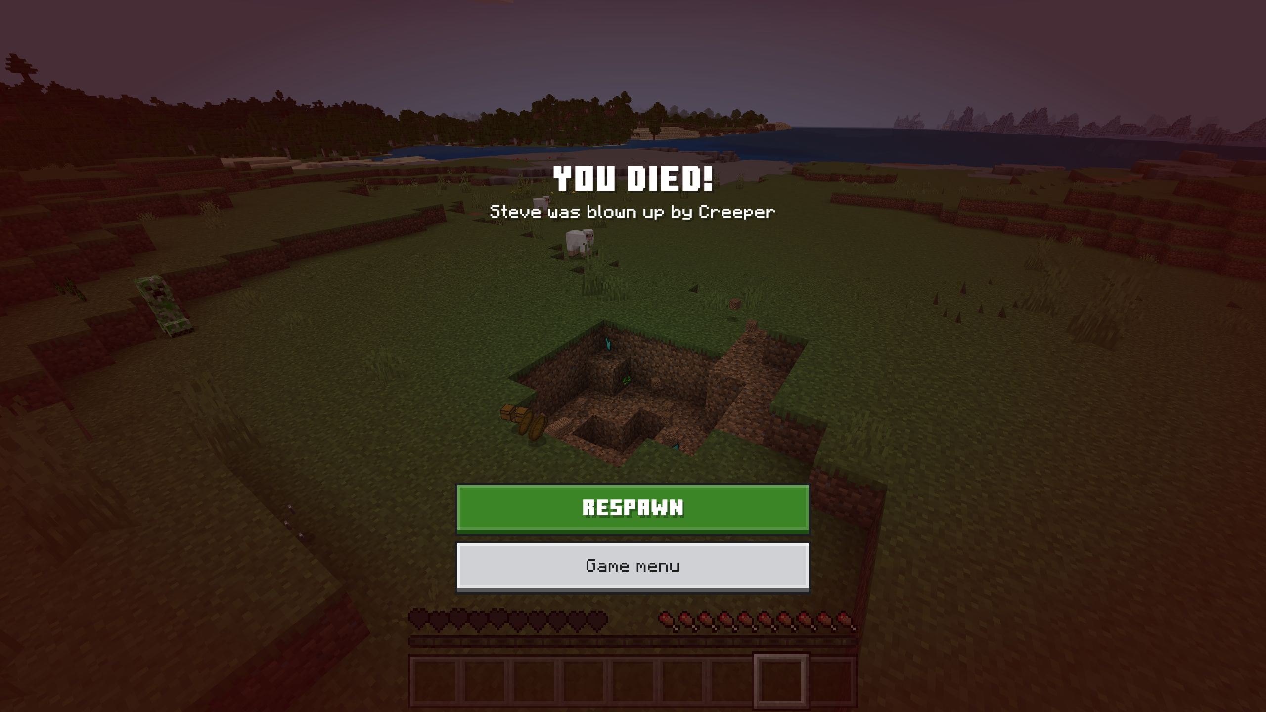 Today we’re making some changes to the screen you see when you die in Minecraft. The camera now zooms out so it’s easier to see why you died, the hotbar is visible at all times, and you can change certain settings before respawning.